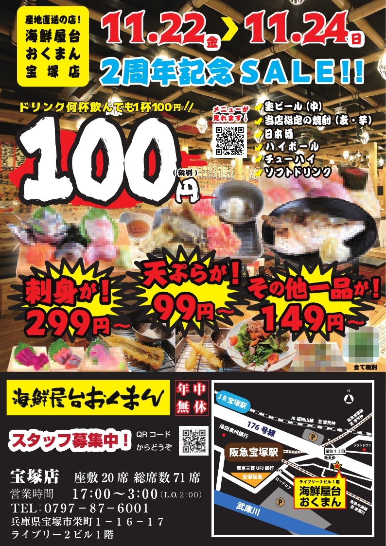 海鮮屋台おくまん宝塚店 2周年記念セール!